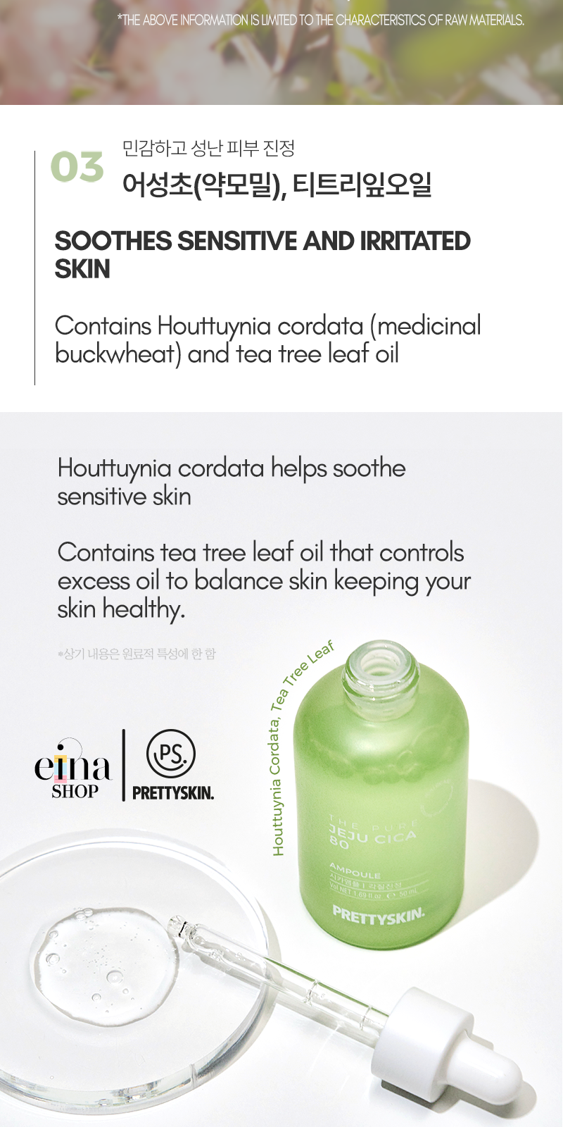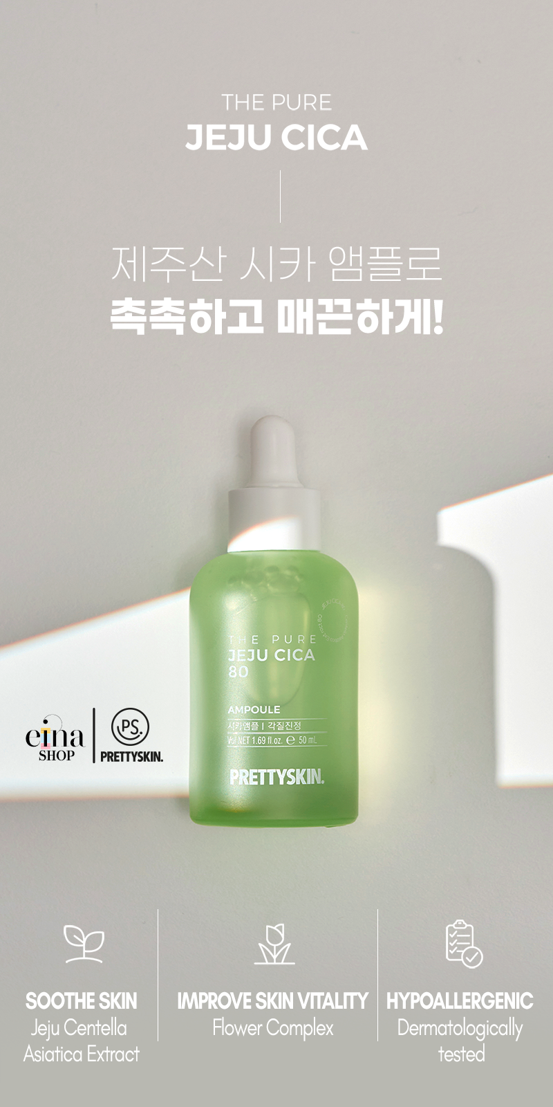 The Pure Jeju Cica 80 Ampoule contains 100% natural jeju cica plant extract that is dermatologically tested and is also suitable and safe to use for sensitive skin.
