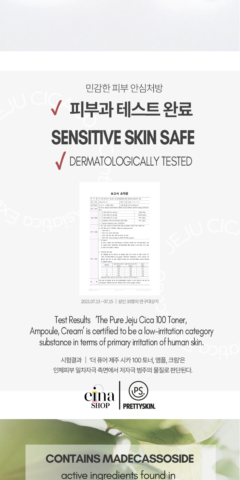 The Pure Jeju Cica Skincare Series is dermatologically certified to be a low irritation category that can be use for even sensitive skin.