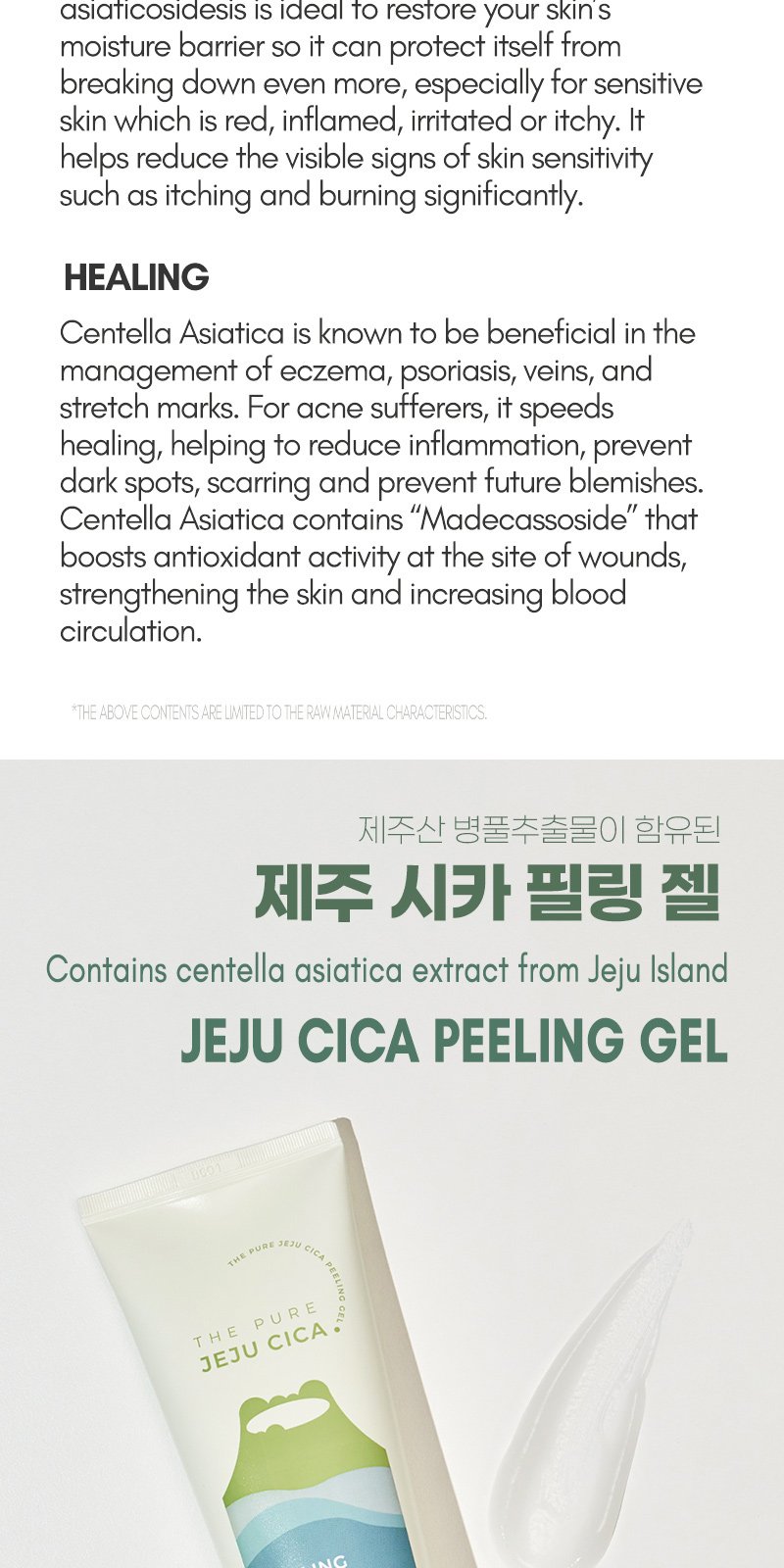 The Pure Jeju Cica Peeling Gel contains natural jeju cica plant extract that is suitable and safe to use for sensitive skin.