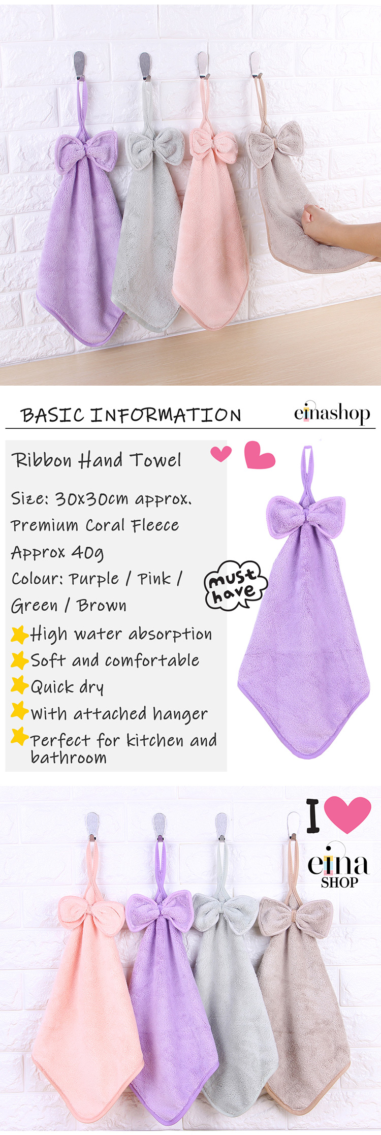 Ribbon hand towels that are made of quality premium coral fleece. Highly absorbent. Soft and comfortable and quick dry. Get 3 Pieces in this bundle deal.