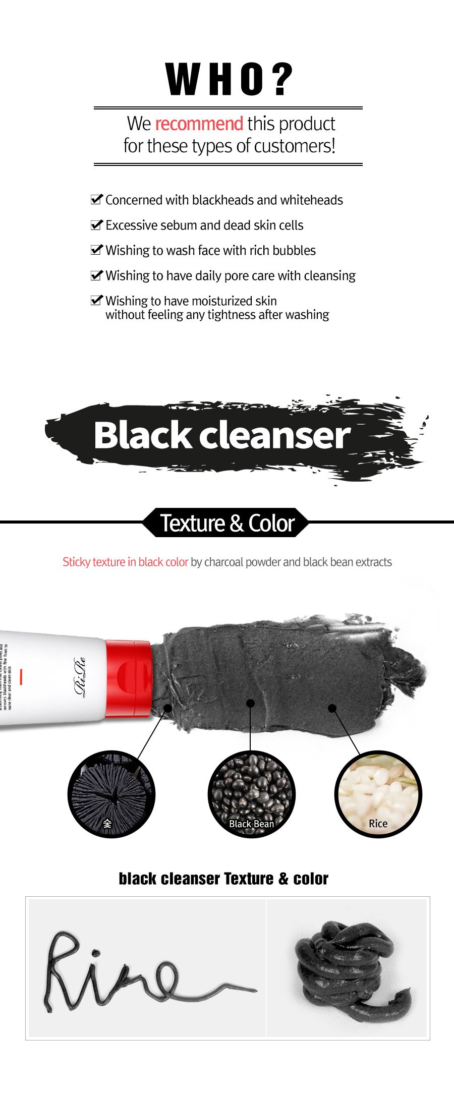 2. The superior cleansing power of black beans and rice extracts cleanses pores deep inside and tightens enlarged pores, restoring elasticity.
