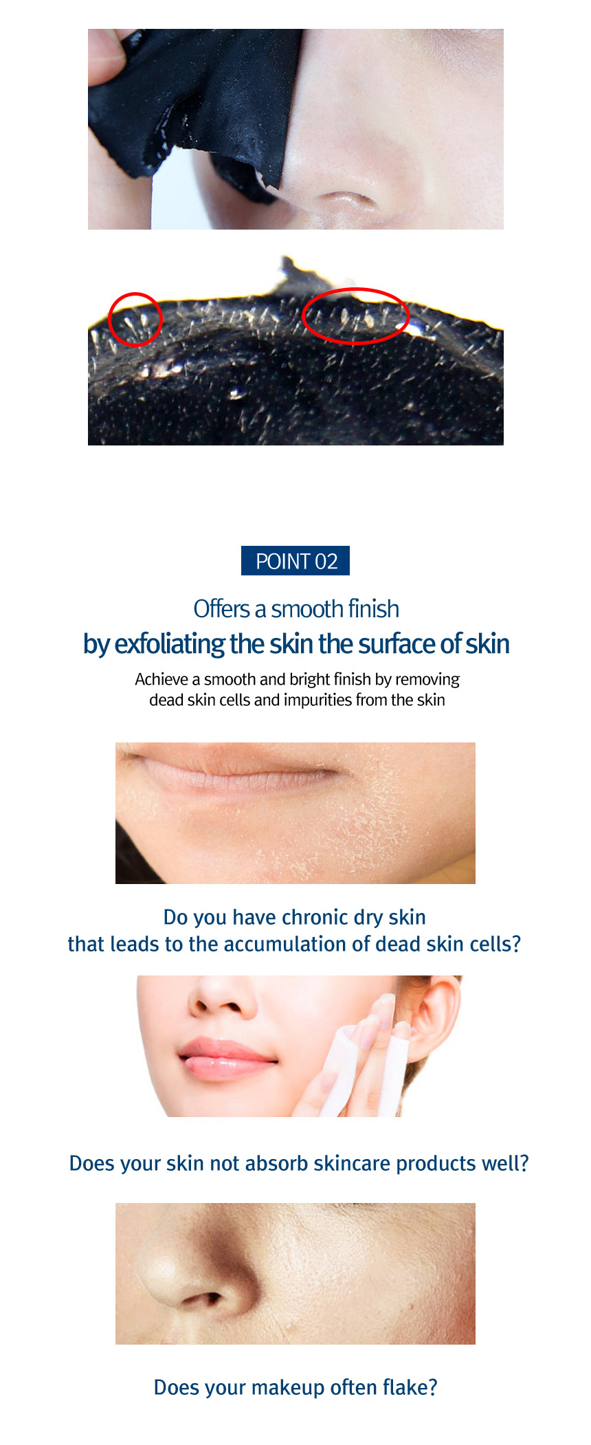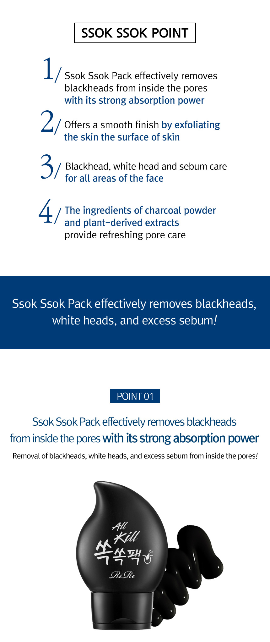 1. Effectively removes blackheads from inside the pores with its strong absorption power.