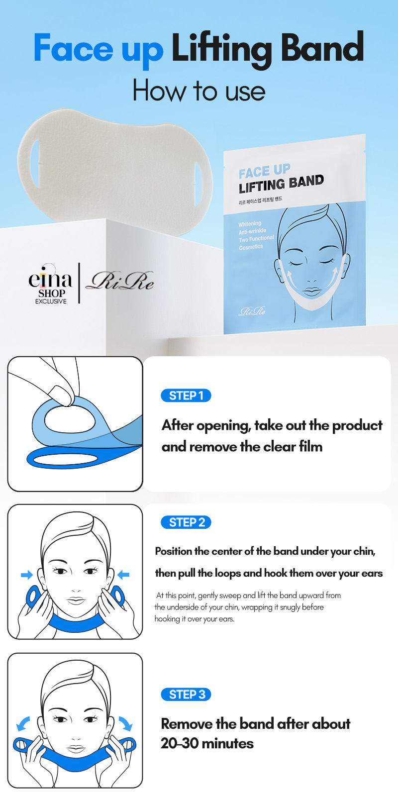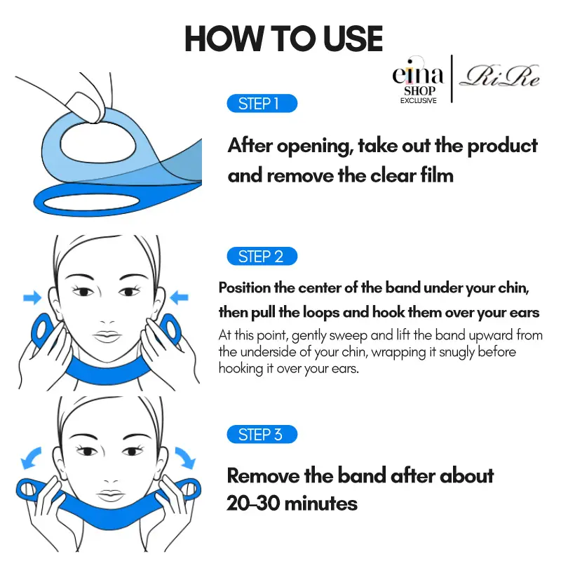 2. Position the center of the band under your chin, then pull the loops and hook them over your ears. At this point, gently sweep and lift the band upward from the underside of your chin, wrapping it snugly before hooking it over your ears.