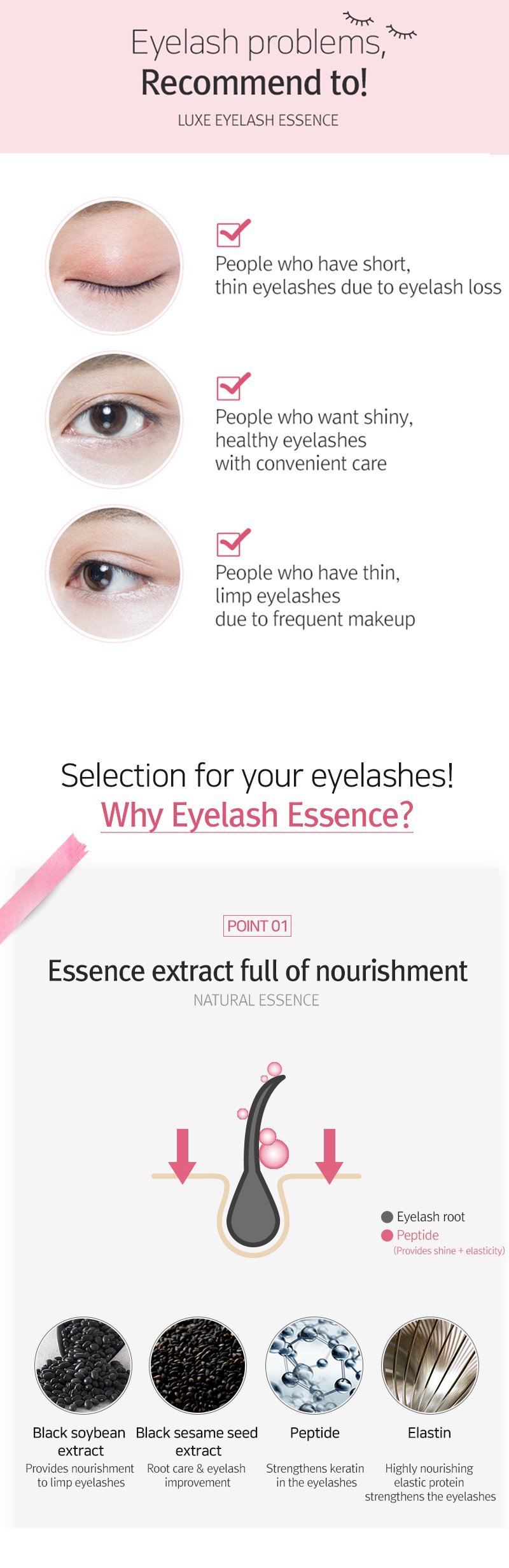 Make short and weak eyelashes longer and richer with enriched essence!