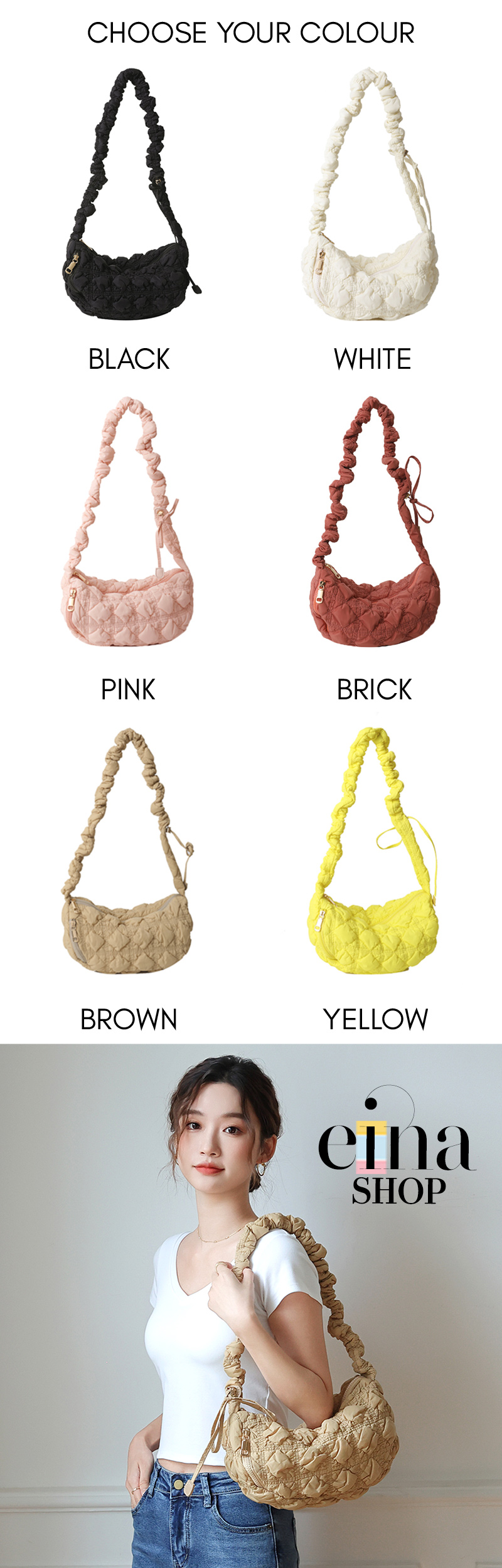 • Comes in BLACK / WHITE / PINK / BRICK / BROWN / YELLOW