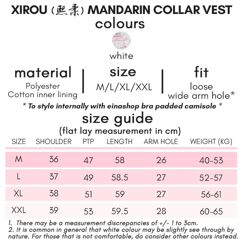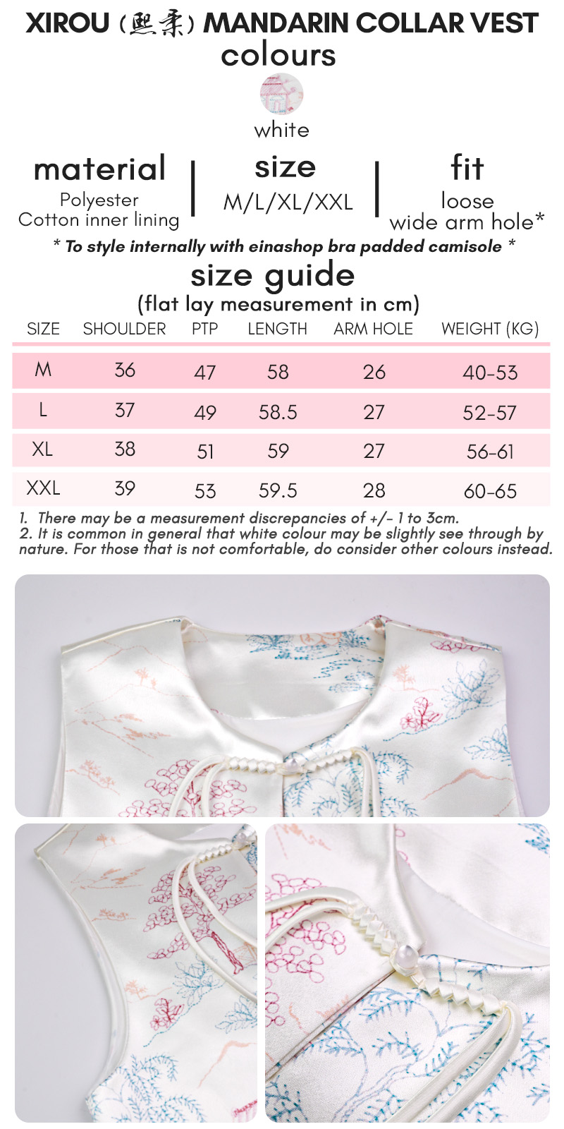 Xinrou vest features a mandarin collar design, adding a traditional touch.